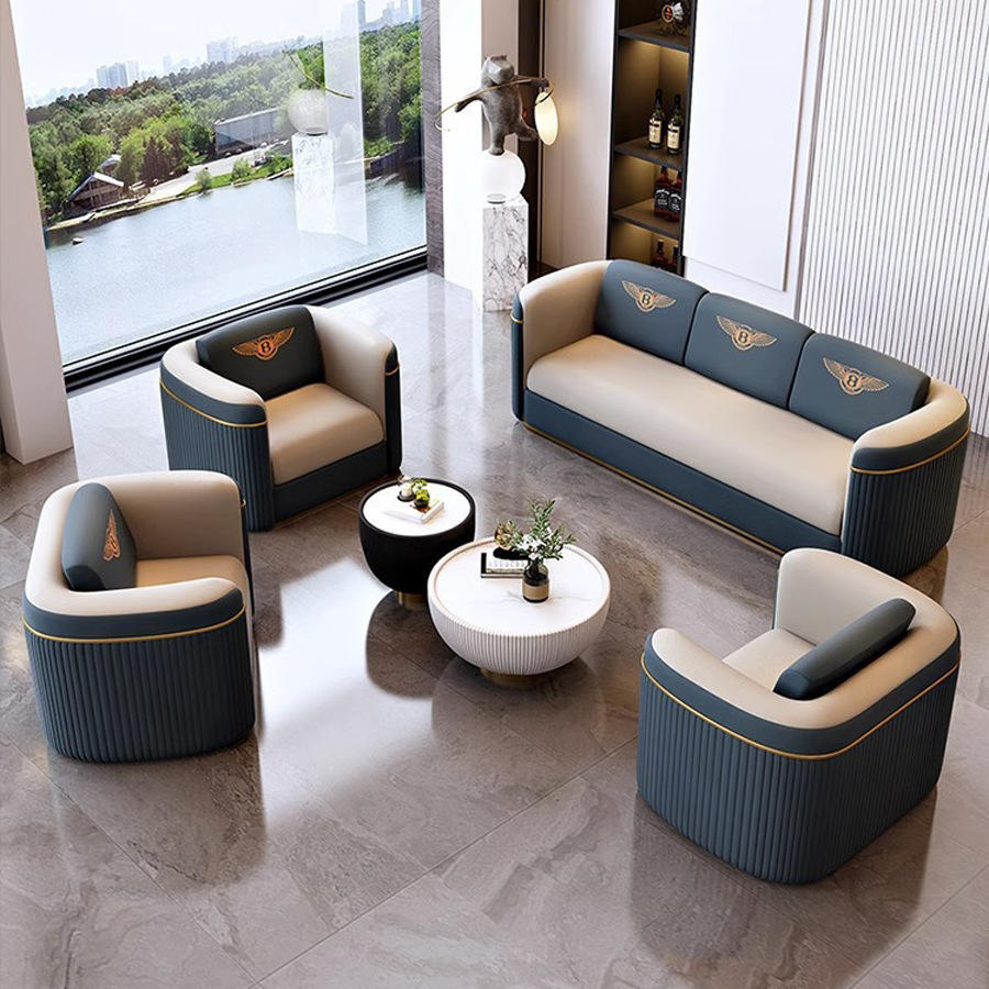 Ensemble de canapés de bureau modernes, éponge haute densité, fabrication soignée, motifs artistiques, mobilier de réception