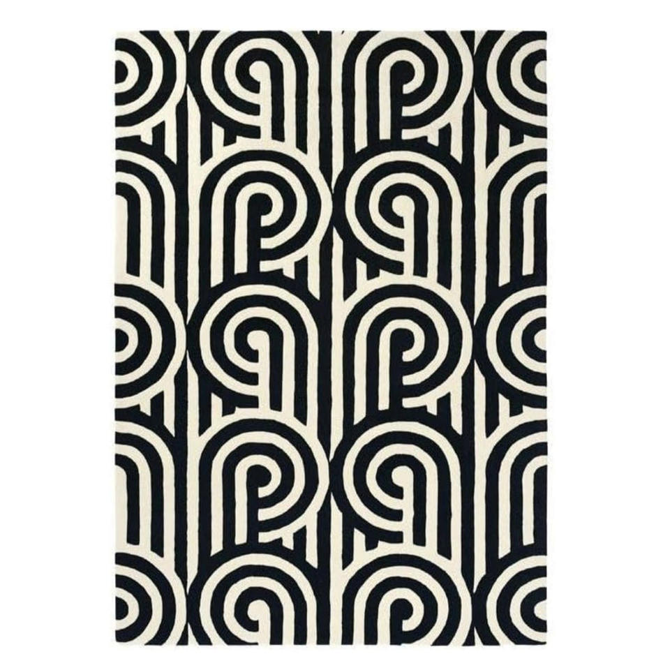 Tapis moderne Op-Art fait main et tufté | Tapis esthétique monochrome à motif tourbillonnant | Tapis de salon abstrait en laine de qualité supérieure
