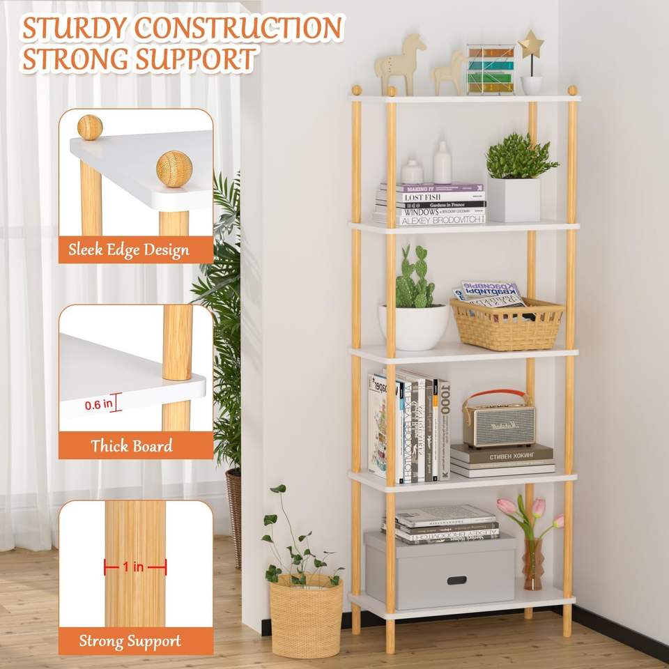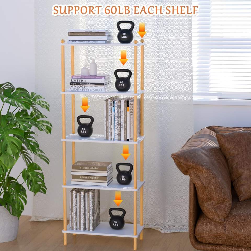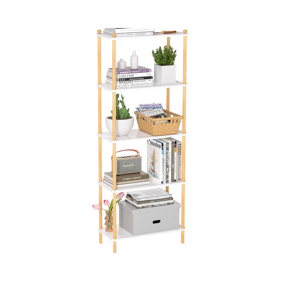 Étagère ouverte moderne, étagère de rangement autoportante, présentoir multifonctionnel, bibliothèque en bambou à 5 niveaux
