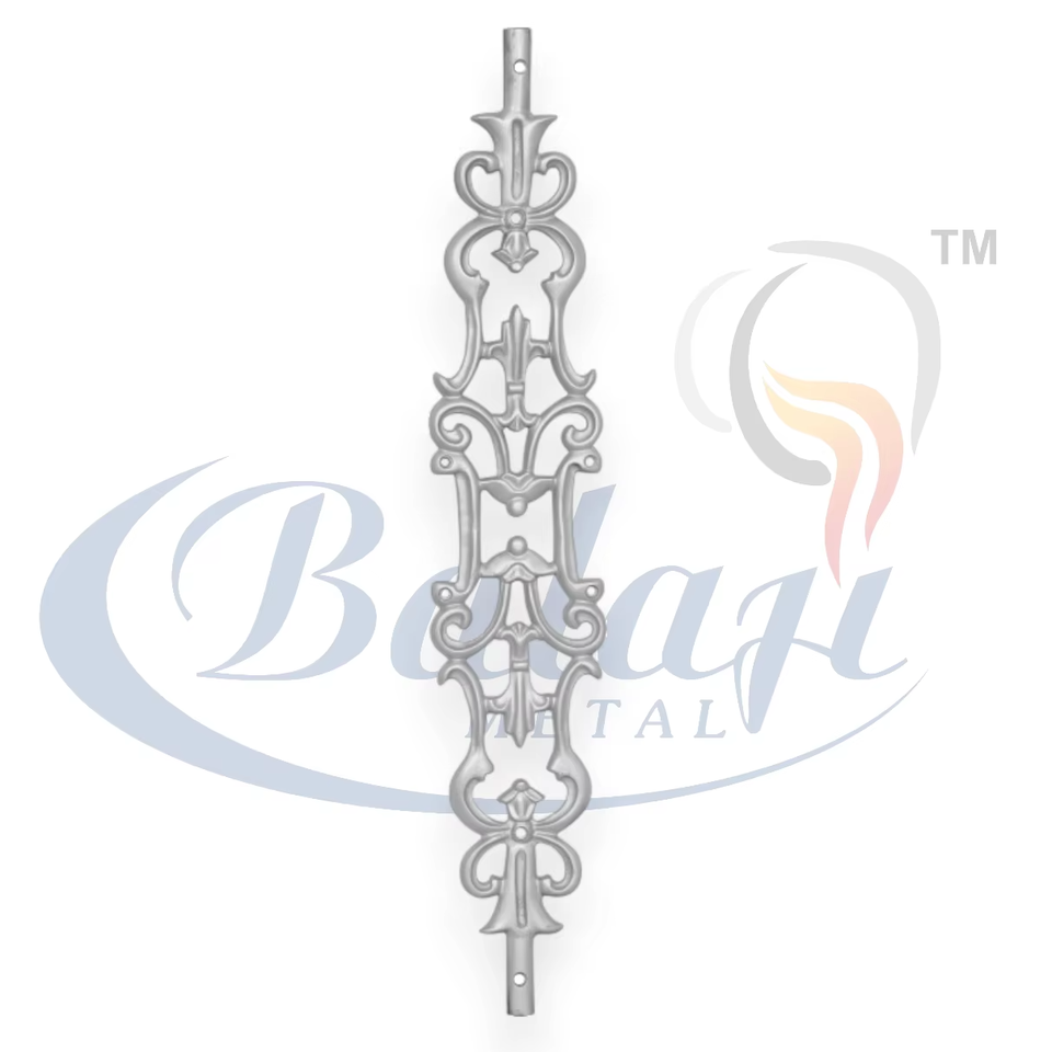 Rampe de balcon moderne en fonte sans cadre, design parisien orné, finition moulée au sable, gris poli, villa résidentielle