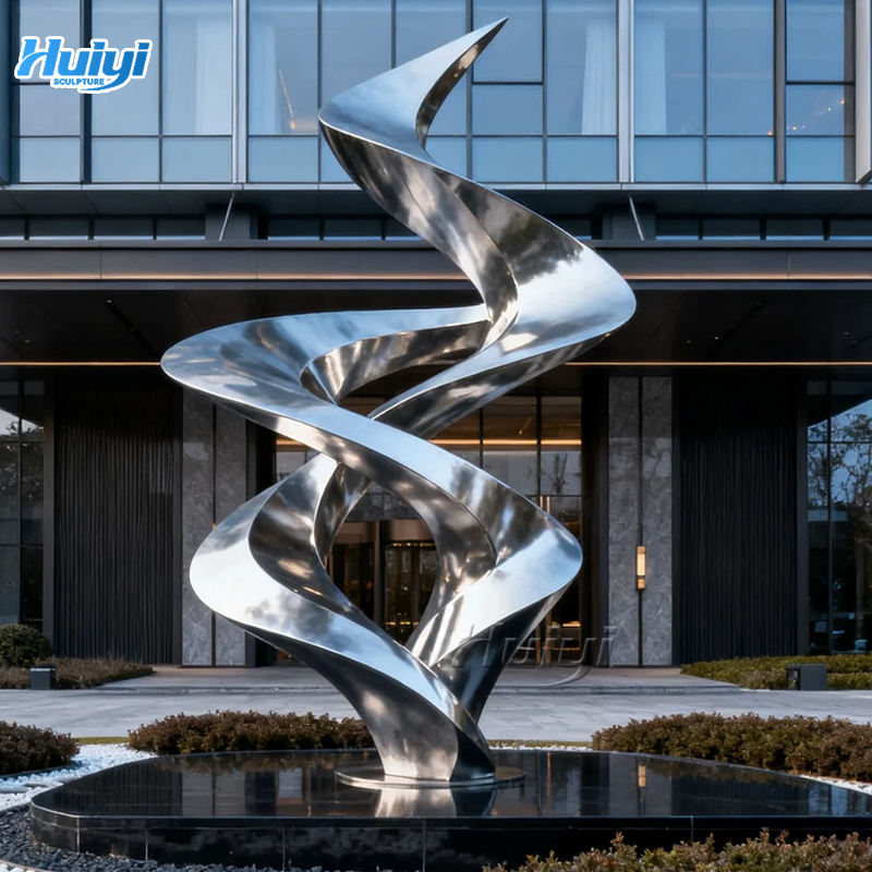 Sculpture de ruban en acier inoxydable à finition miroir, artisanat métallique abstrait moderne pour l'extérieur, à vendre
