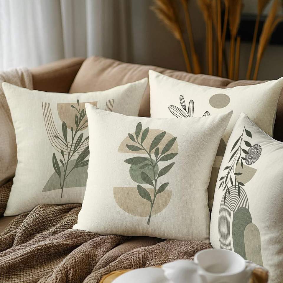 Ensemble de 4 housses de coussin modernes d'extérieur, style bohème abstrait, 20x20 pouces, en mélange de lin, pour coussins décoratifs et confortables