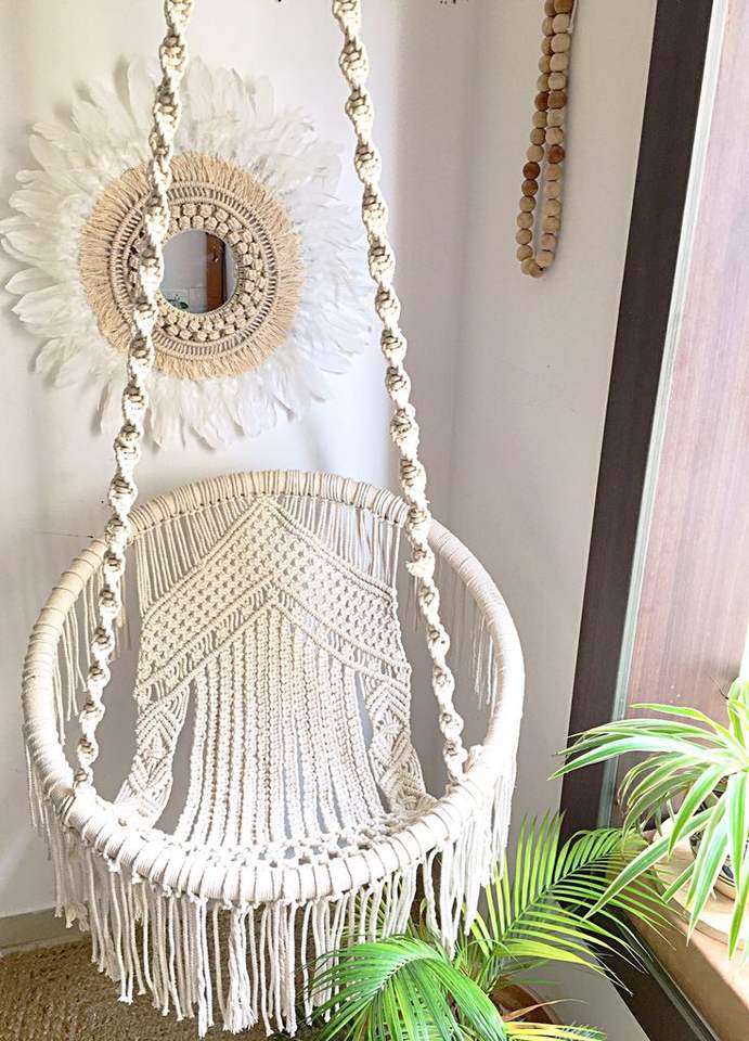 Chaise suspendue bohème moderne en macramé pour l'extérieur, 100% corde en coton biologique, faite à la main, respectueuse de l'environnement, balançoire pour meubles de maison