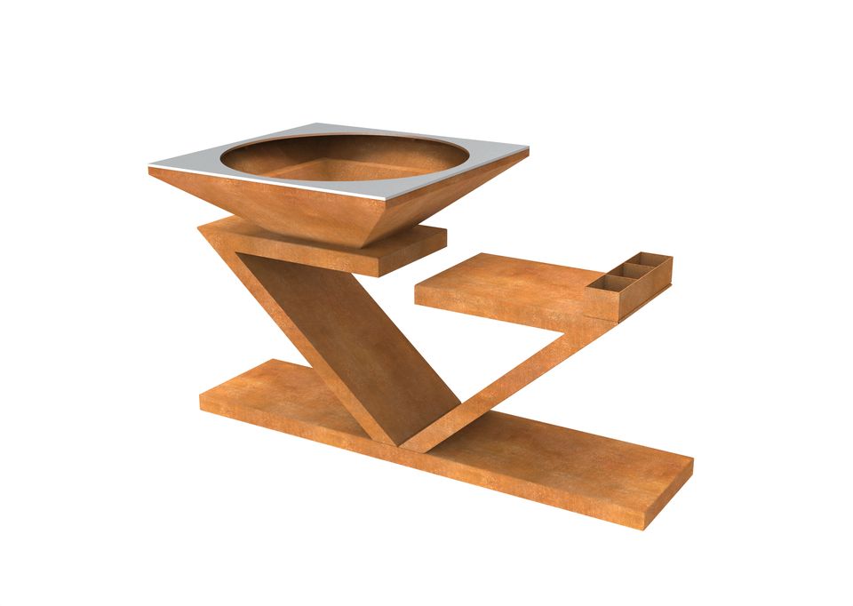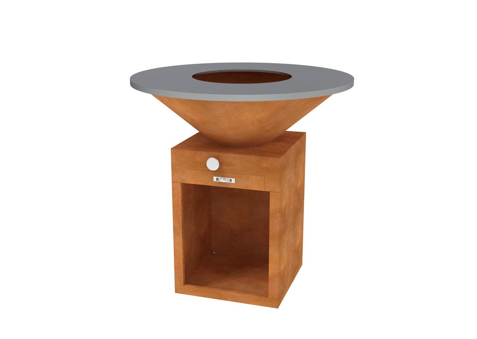 Barbecue extérieur moderne en acier Corten écologique, foyer robuste avec four à pizza et dispositif de sécurité anti-flamme