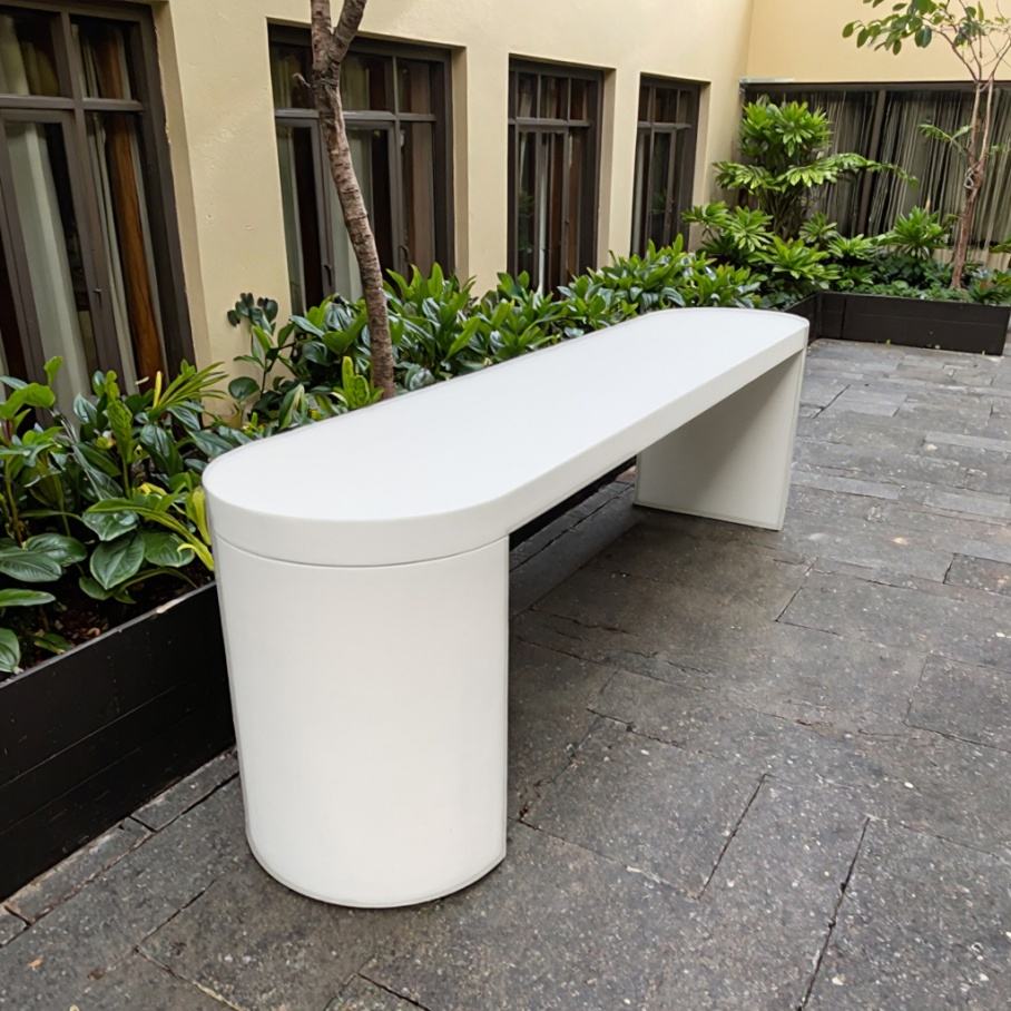 Meubles de salle à manger d'extérieur modernes, grande table carrée en ciment et chaises pour 4 personnes, cours, entrées, hôtels, gymnases, hôpitaux