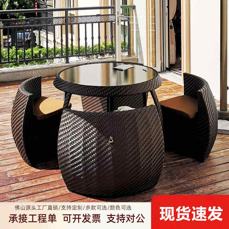 Ensemble de salle à manger d'extérieur moderne table basse portable en rotin et meubles en bois imperméables pour les loisirs dans la cour, le parc ou la villa