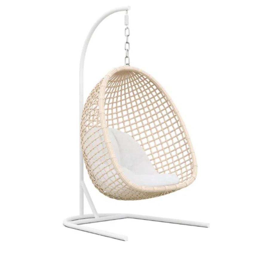Fauteuil suspendu moderne en rotin, tissu, plastique et métal, avec coussin à séchage rapide, pour une personne, pour une utilisation en intérieur ou en extérieur