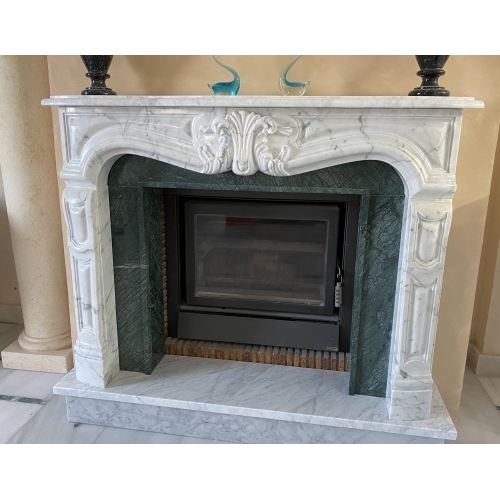 Modern Outdoor Fireplace Carrara Marble and Green with Remote Control Free Standing and Indoor Usage