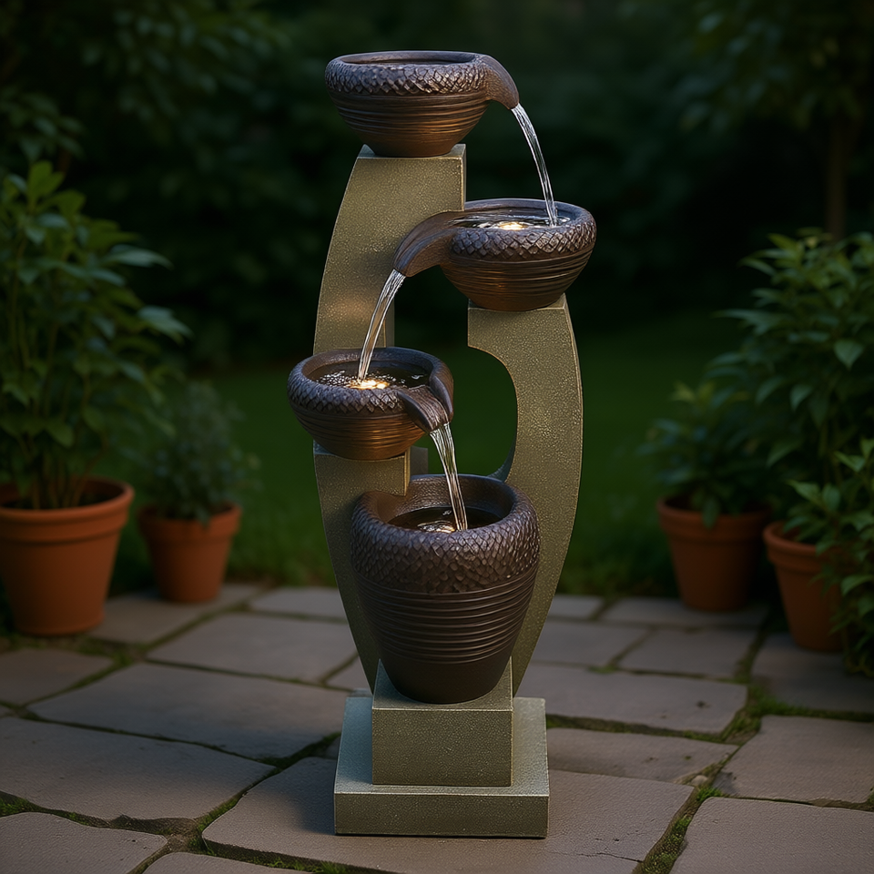 Fontaine d'extérieur moderne de 40 pouces de hauteur, design contemporain, décoration de jardin et de patio, matériau en pierre résistant à l'eau