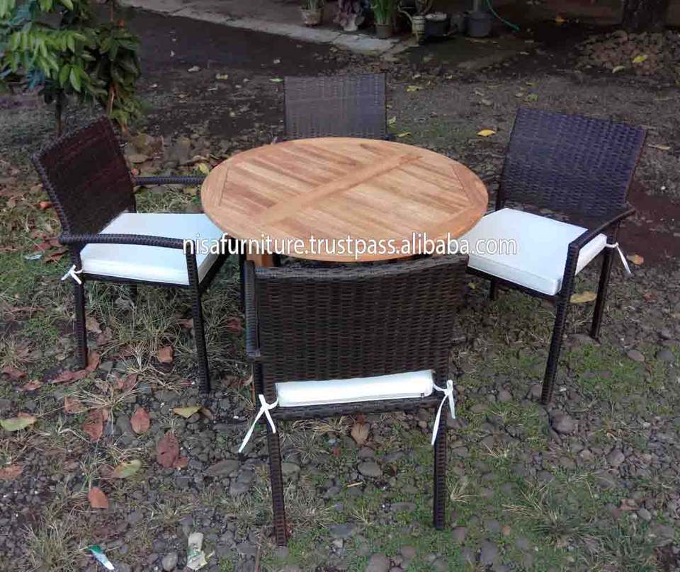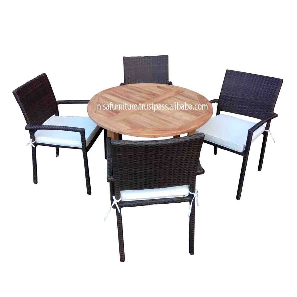 Table à manger ronde et chaises de jardin d'extérieur moderne en bois de teck et rotin pour meubles d'extérieur de patio