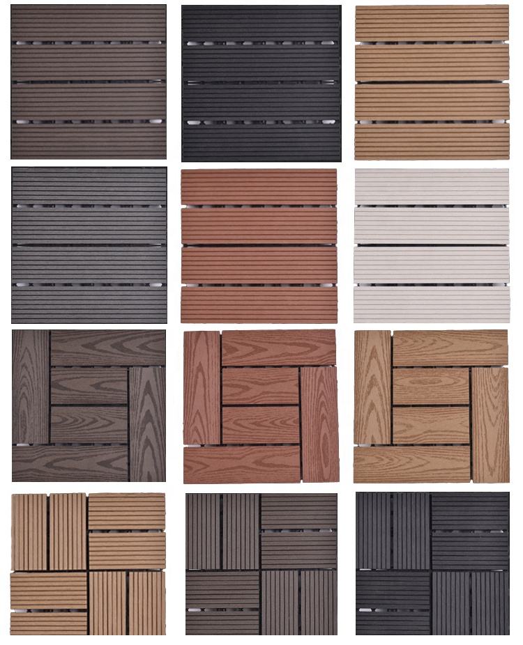 Carreaux de terrasse modernes en WPC à emboîtement pour l'extérieur Plancher en bois plastique étanche pour balcon, jardin et terrasse Extérieur-Brossé