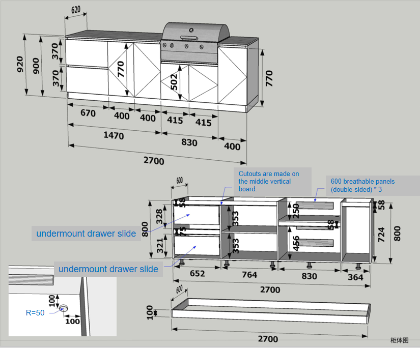 Accessoires:Dosseret, Tiroir panier, Coulisse, Poignée et bouton, Charnière, Cabinet de base d'évier