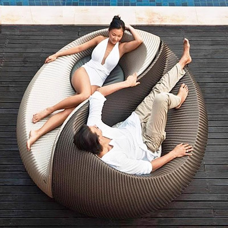 Chaises longues modernes en rotin PE pour l'extérieur, résistantes aux UV, avec coussins, pour chambre à coucher, bord de piscine, hôtel, balcon, jardin, cour