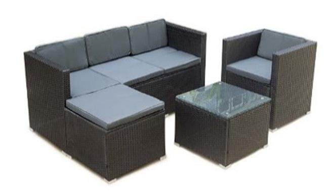 Ensemble de canapé en rotin d'extérieur moderne et écologique avec coussins imperméables et table en verre, structure en acier pour parc et salle à manger