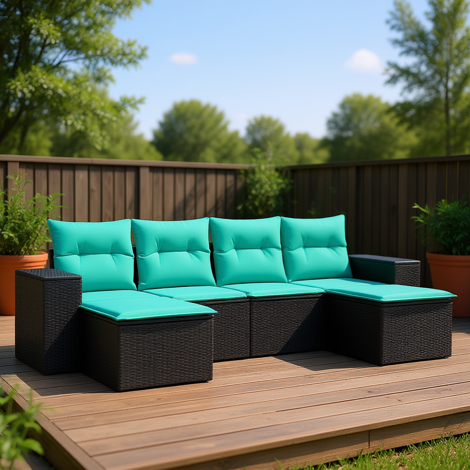 Ensemble de canapés de patio extérieur moderne en rotin tressé, 6 places, style contemporain, meubles pour jardin et terrasse