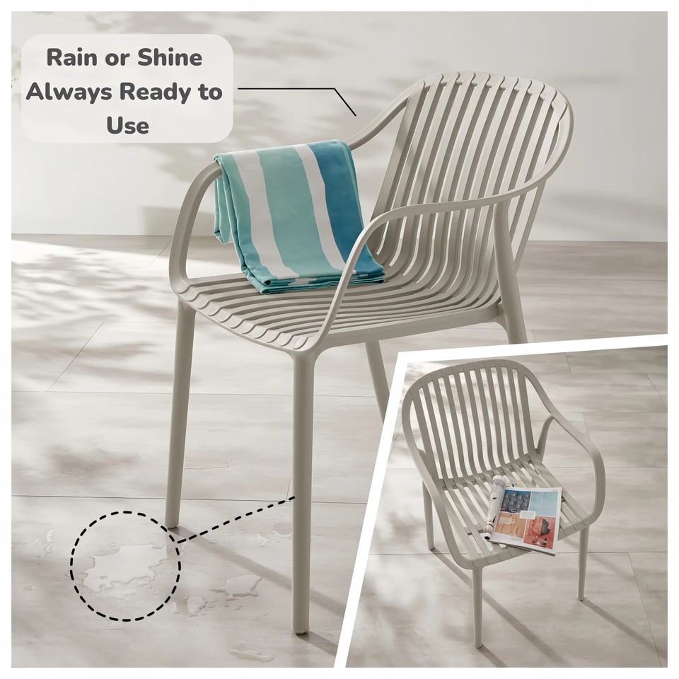 Ensemble de salle à manger moderne en plastique pour l'extérieur, table carrée, 4 fauteuils empilables, pré-assemblé, imperméable, résistant aux UV, pour jardin, café, piscine