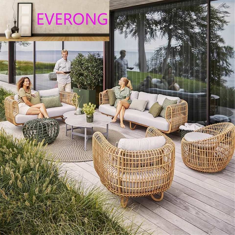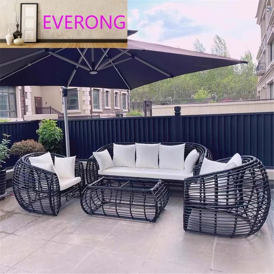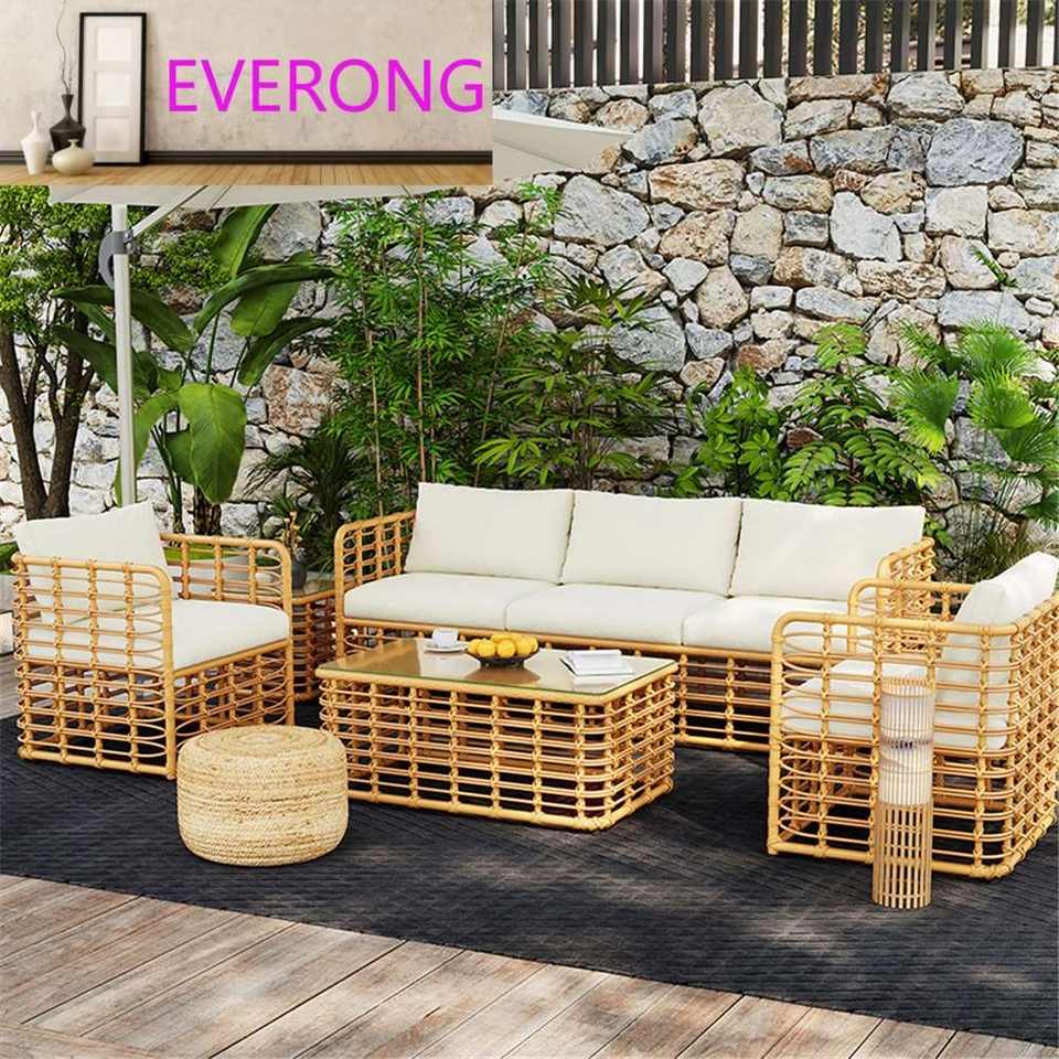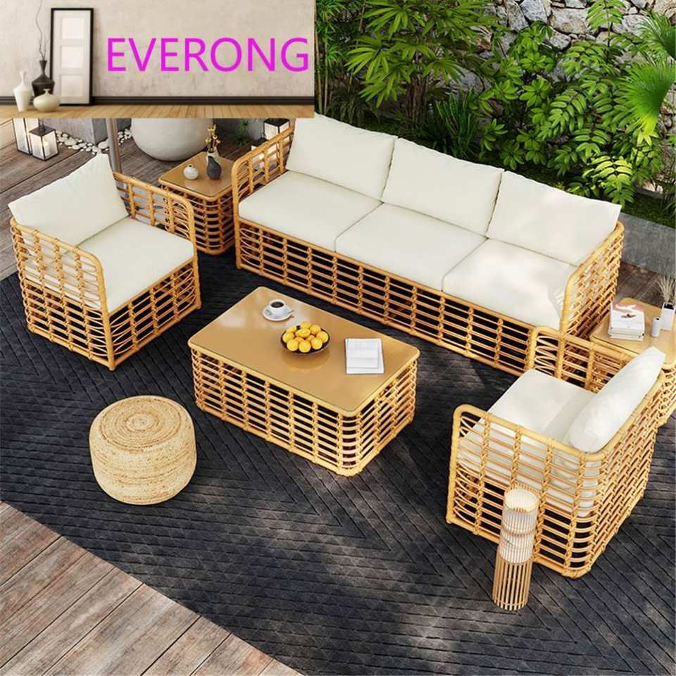 Ensemble de canapé et table basse en rotin d'extérieur moderne, imperméable, pour hôtel et villa, salon, cour, balcon, jardin, protection solaire