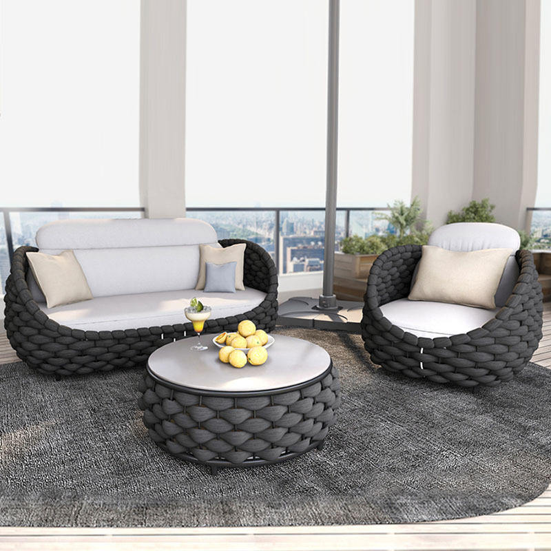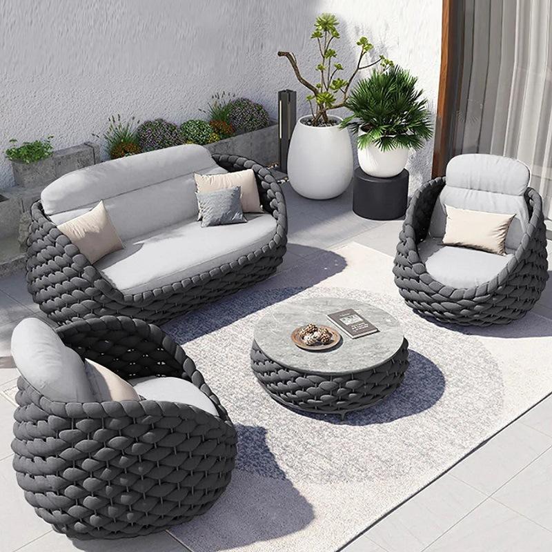 Ensemble de canapés modernes en rotin tissé, terrasse, cour, balcon, salon, villa, mobilier de loisirs avec coussin