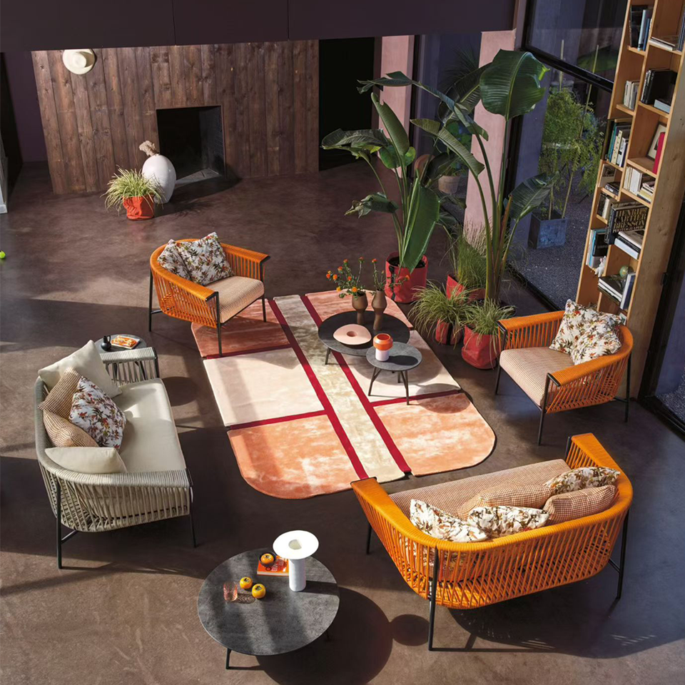 Ensemble de canapés d'extérieur modernes, cadre en aluminium, tissage de corde, coussins imperméables, mobilier de jardin, patio, balcon, hôtel