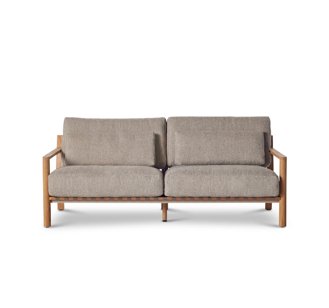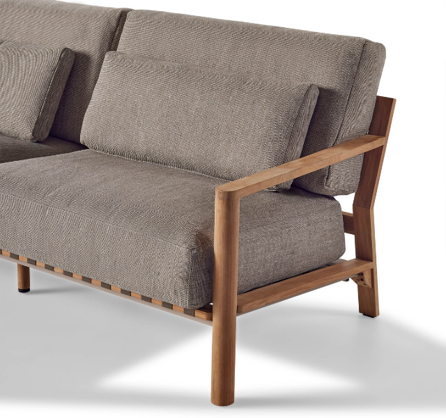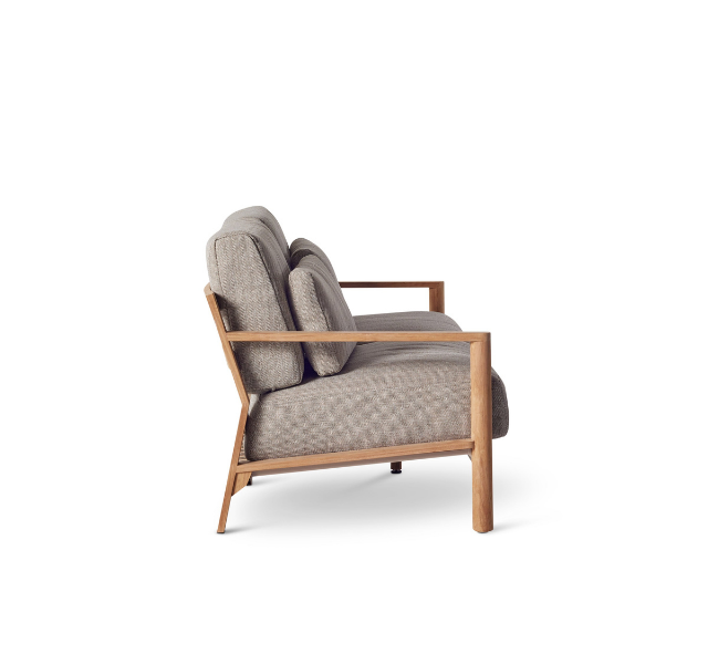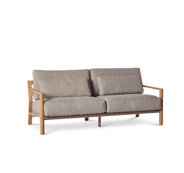 Canapé deux places en teck massif pour l'extérieur, design tropical minimaliste, résistant à l'eau, de la collection Four Seasons Hotel at The Surf Club.