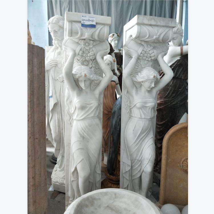 Moderne Extérieur Pierre Porte Décor Marbre Sculpté Dame Demi Femmes Figure Statues Colonne Piliers Conception