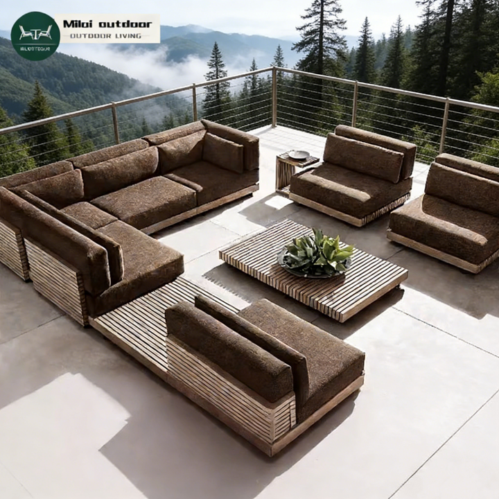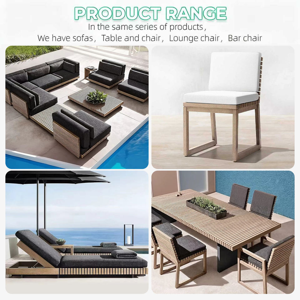 Ensemble de canapés en teck d'extérieur moderne, résistant aux intempéries, pour villa, cour, hôtel
