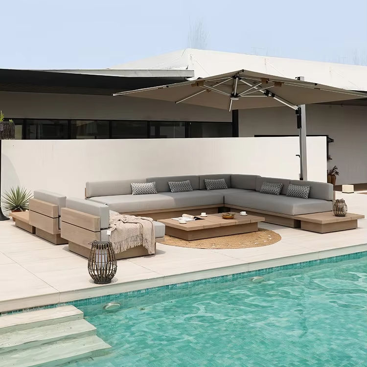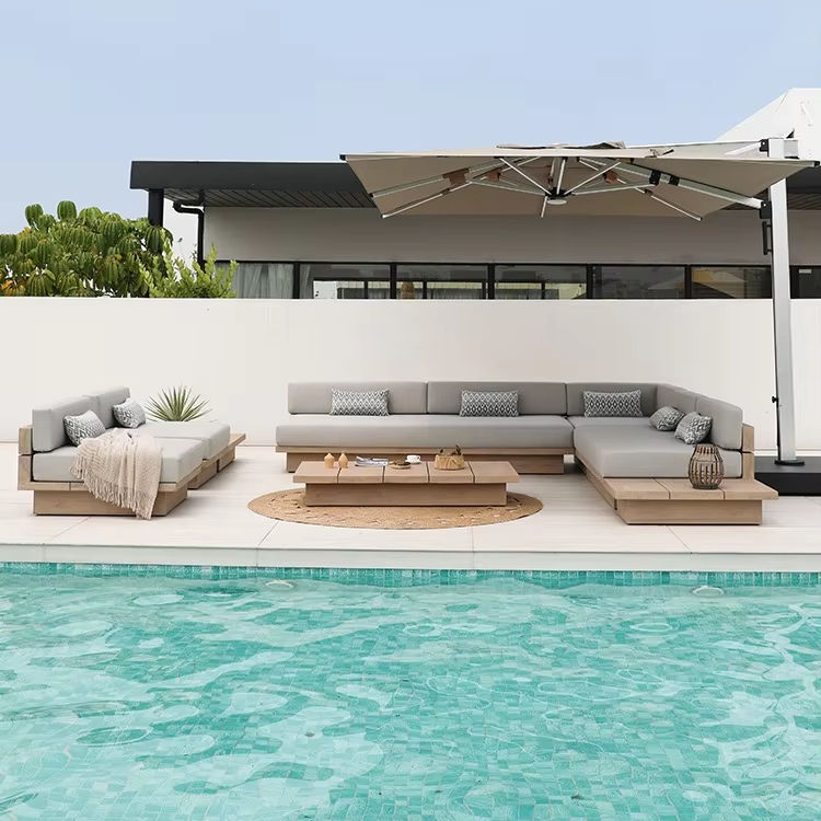 Ensemble de canapés d'extérieur en teck moderne en bois massif imperméable pour cour, toit, jardin, terrasse, parc et hôtel, loisirs, combinaison de plein air