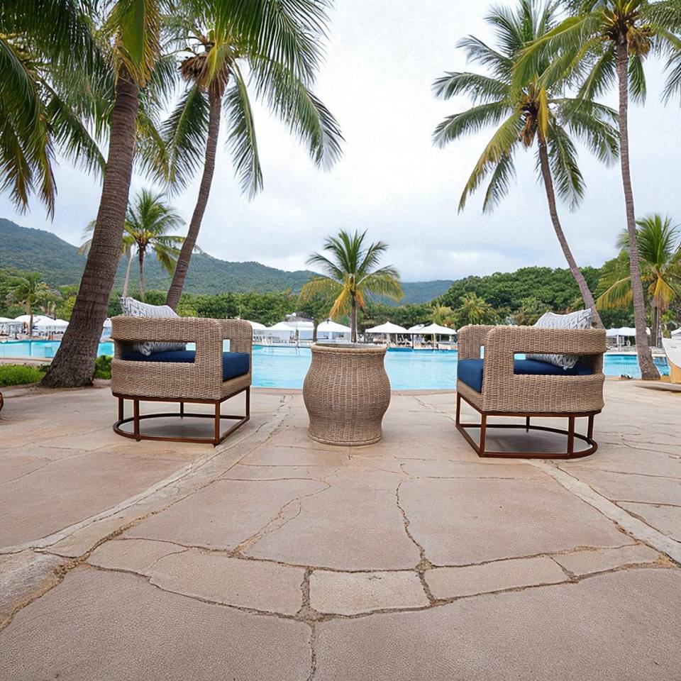 Ensemble bistrot moderne en rotin PE résistant aux UV pour extérieur, noir, écologique, imperméable, mobilier de patio, structure en aluminium, mousse haute densité