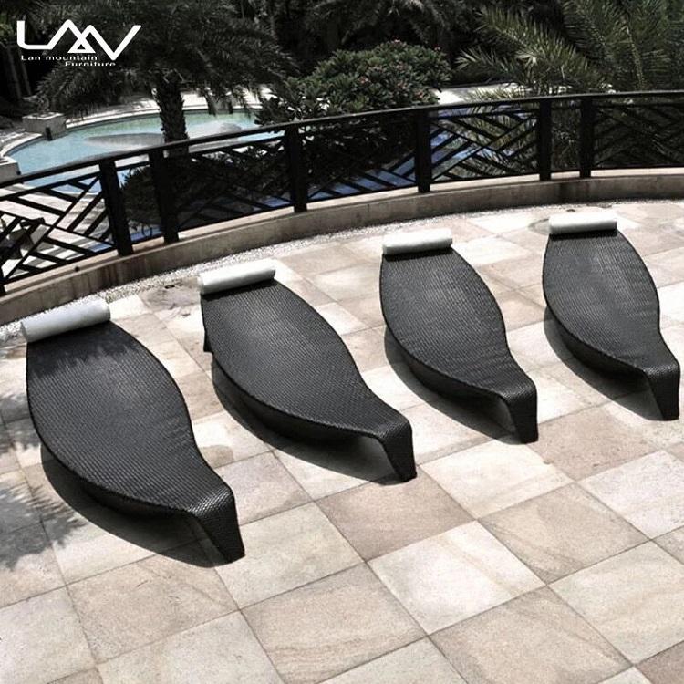Chaise longue de jardin moderne en rotin tressé avec cadre en aluminium pour patio, hôtel, piscine