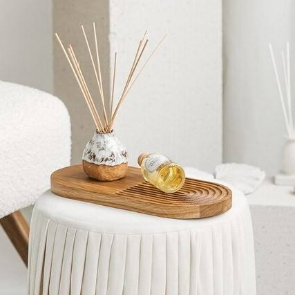 Plateau de service ovale moderne en bois massif, design paysager, fait main, décoratif, multifonctionnel, pour la maison, la table, les mariages et Diwali