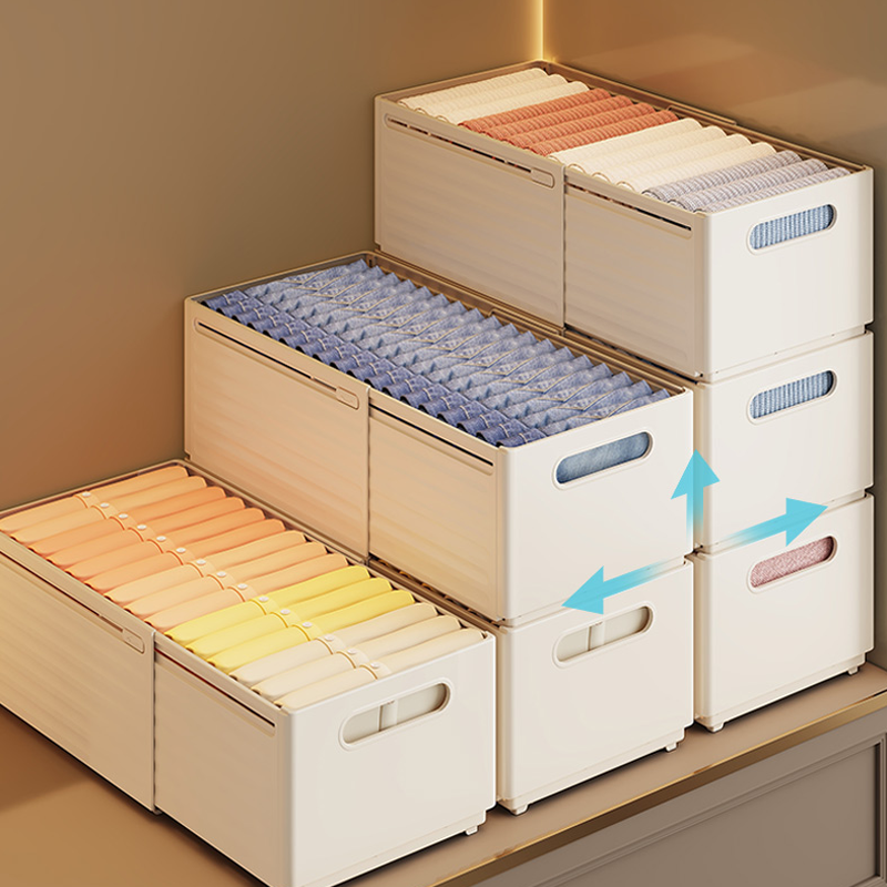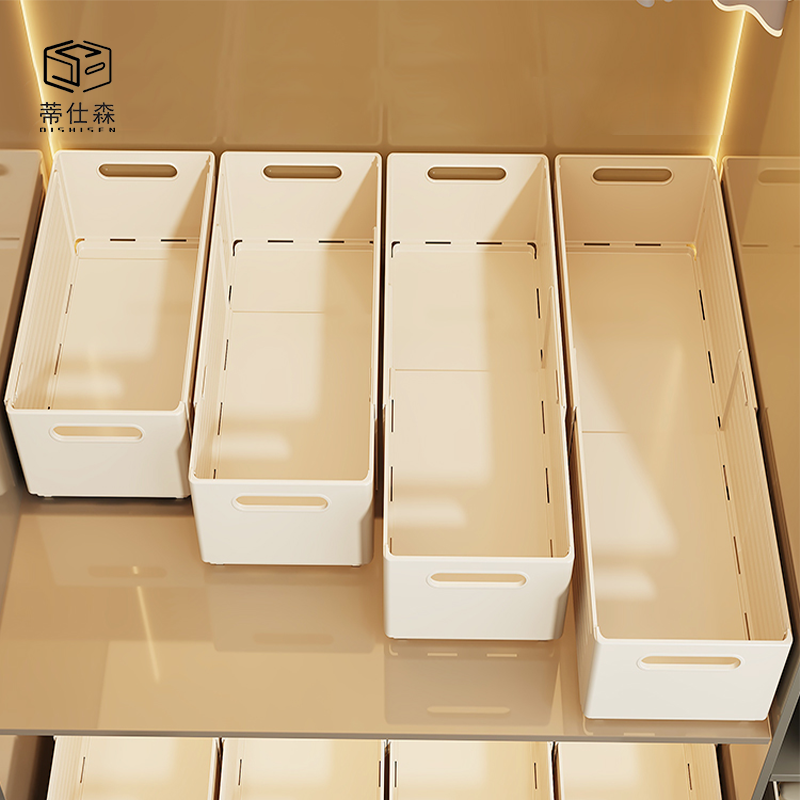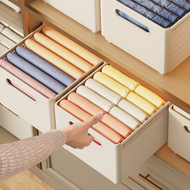 Boîte de rangement moderne en PP pour tiroir de maison, poignée rétractable, multifonctionnelle pour vêtements, aliments, jouets, lavable au lave-vaisselle