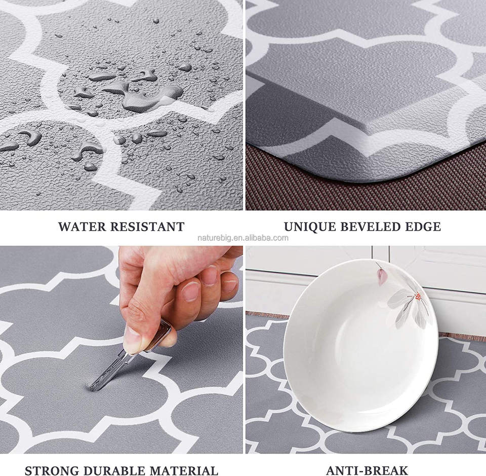 Modern PVC Kitchen Mat Anti-Fatigue Memory Foam Cushioned Rugs Comfort Standing Desk Mats for Office Waterproof and Washable