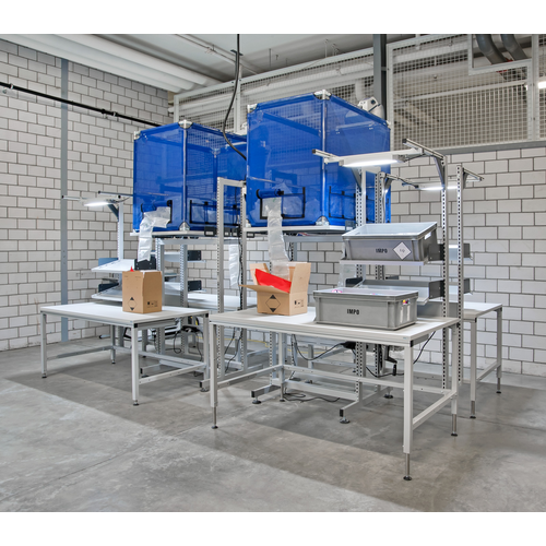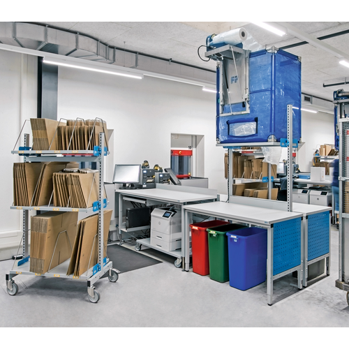 Tables d'emballage modernes dans l'entrepôt d'expédition