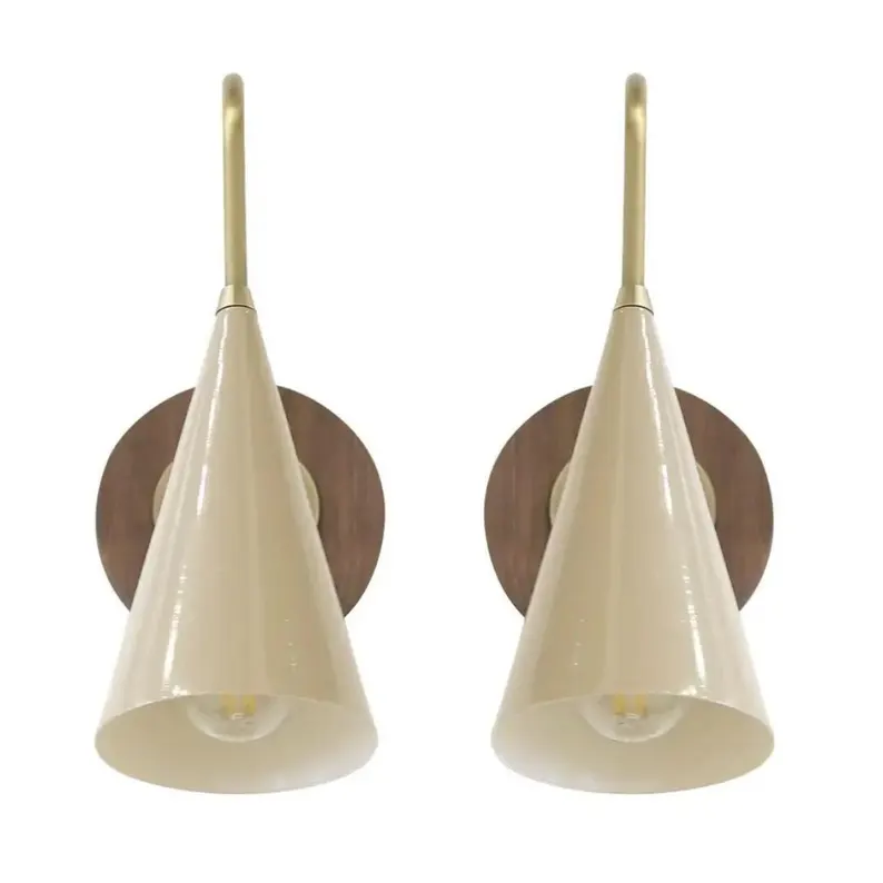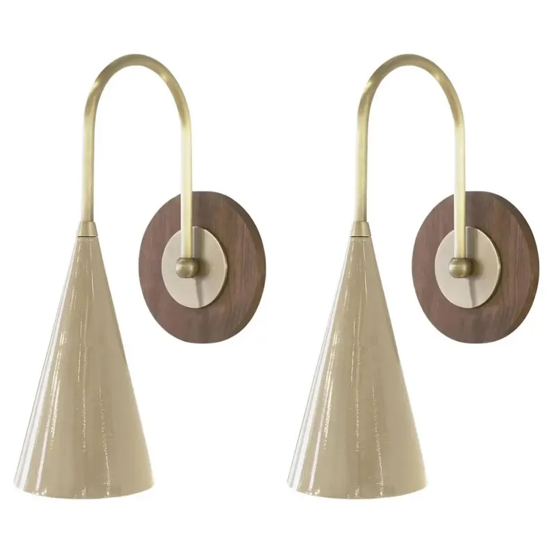 Modern Pair of Solana Brass Wall Lamps Italian Mid Century Sputnik Stilnovo Industrial Walnut Canopy Wall Sconce