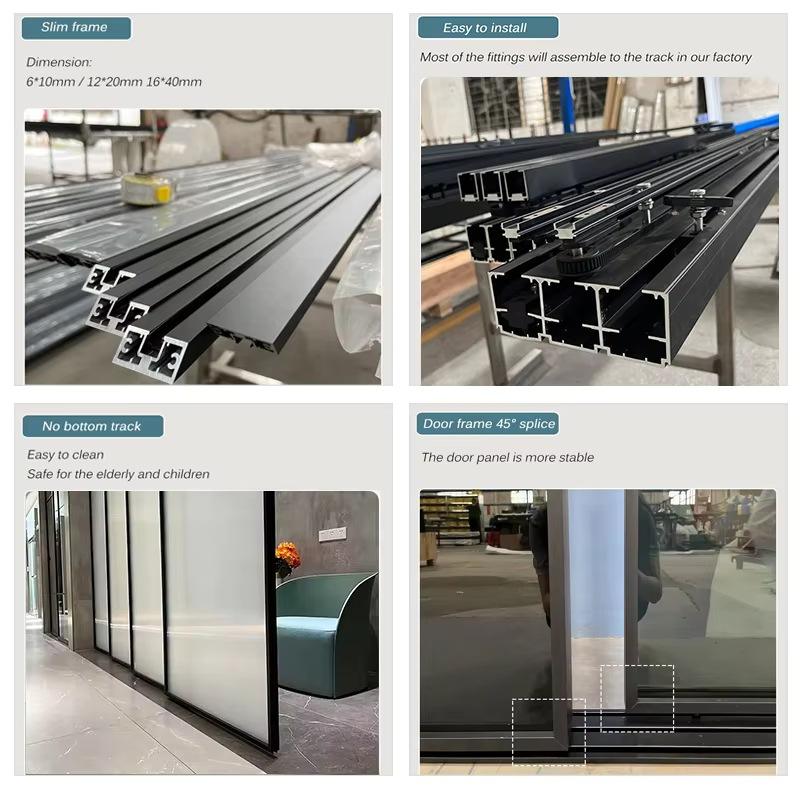 Porte coulissante rétractable moderne avec verre dépoli et cadre en aluminium pour appartement et bureau commercial