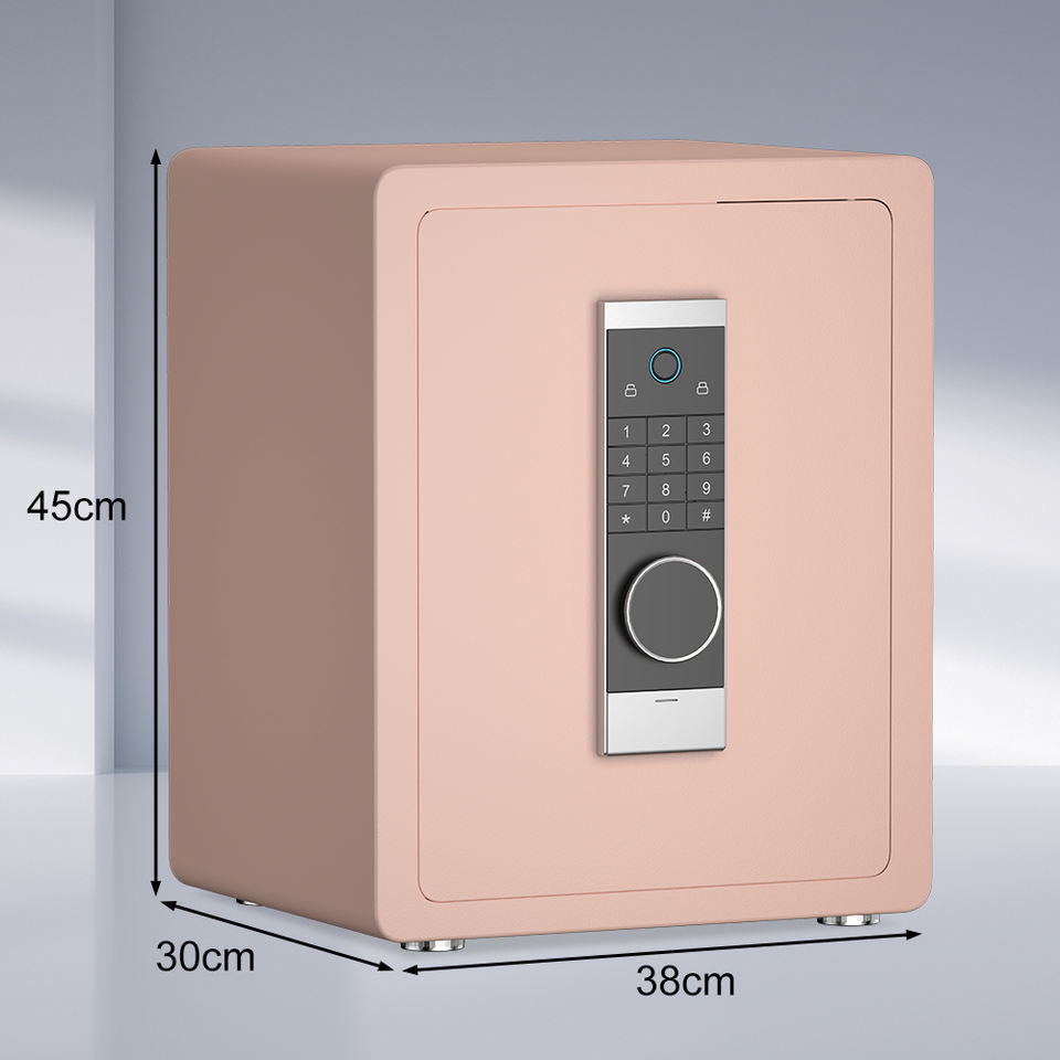 Coffre-fort domestique rose moderne tout en acier, coffre-fort électronique numérique avec serrure à empreintes digitales pour chambre à coucher, rangement de bijoux et d'argent liquide