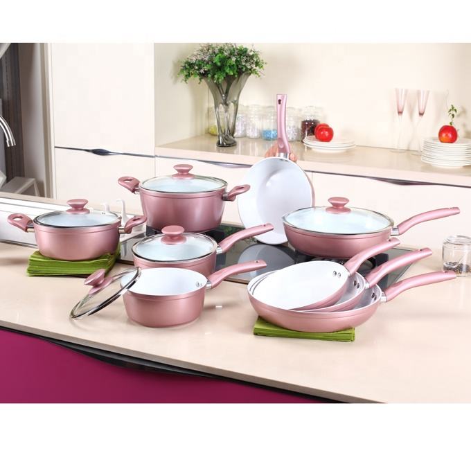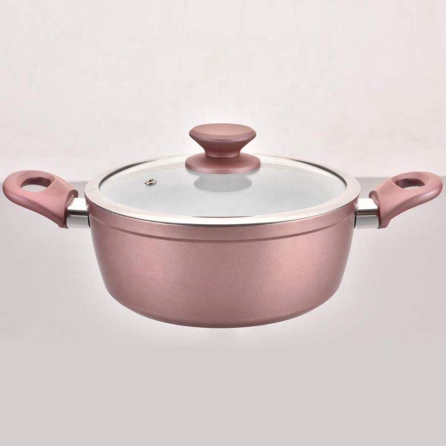 Batterie de cuisine moderne série rose Pcs7 revêtement antiadhésif en aluminium et en métal