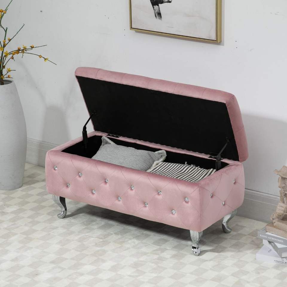 Pouf ottoman carré rose moderne avec rangement, repose-pieds moelleux et doux pour chambre ou salon, idéal pour l'extérieur