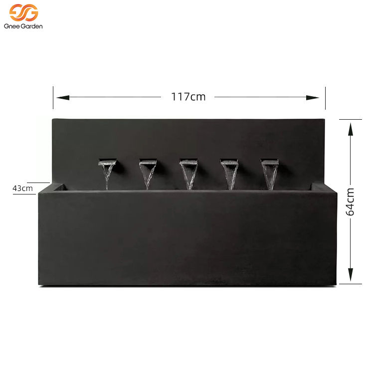 Fontaine d'eau rectangulaire moderne à brancher pour l'extérieur, en aluminium noir, 5 jets, décoration de jardin et de paysage