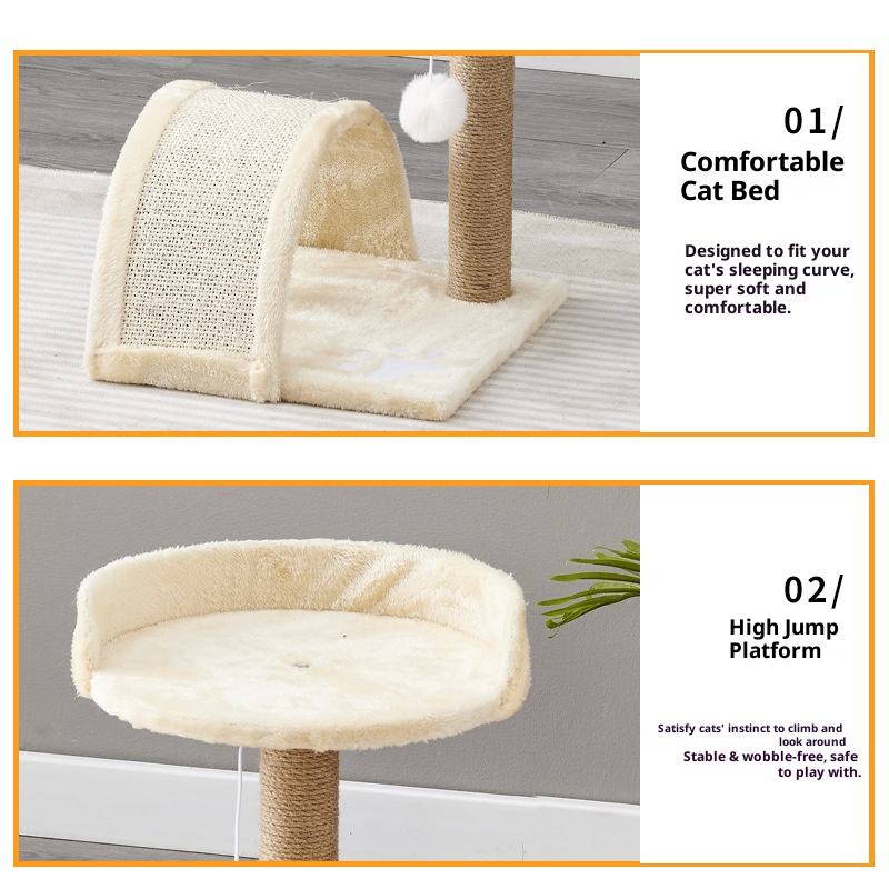 Structure d'escalade pour chat moderne en peluche, personnalisée en usine, avec plateforme de saut intégrée, colonne à griffer et design de nid en sisal