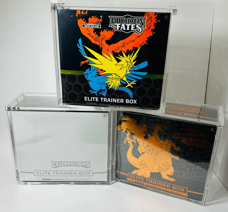 Étui de présentation en acrylique moderne pour Pokémon ETB avec couvercle magnétique pour boîte d'entraînement d'élite écologique pour les boosters de jeu de cartes à collectionner
