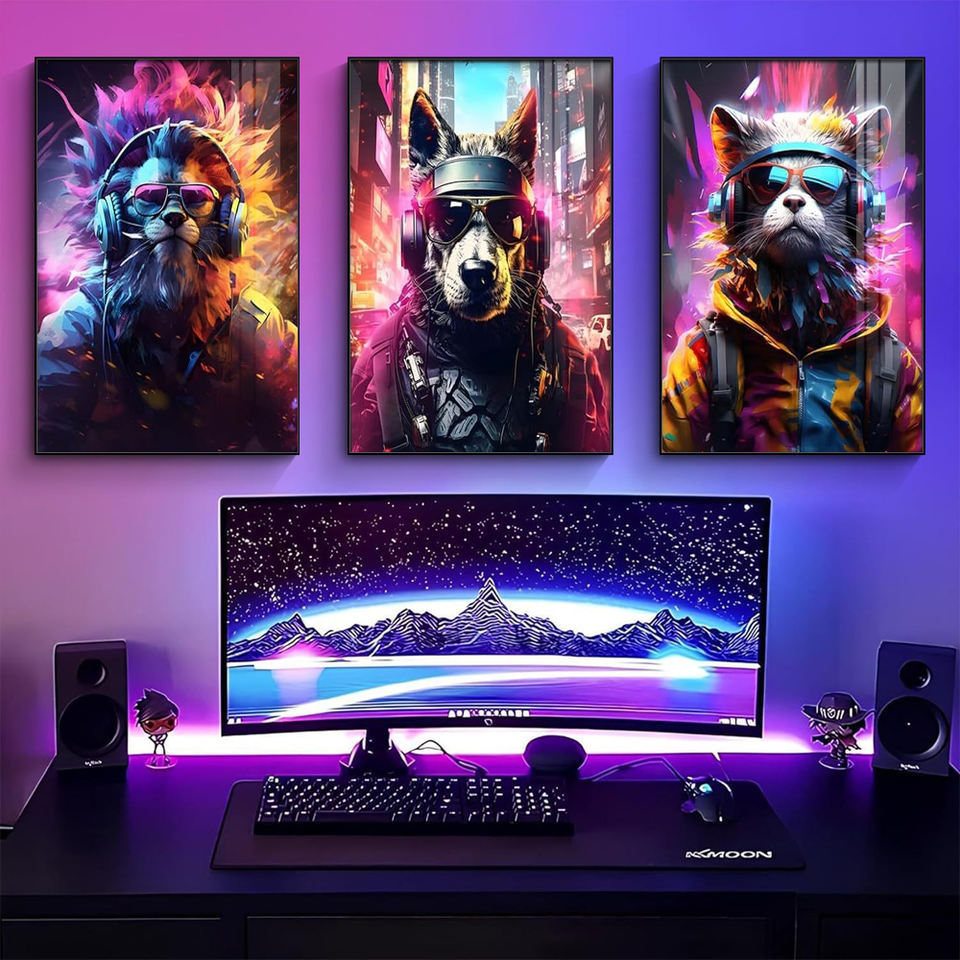Affiche de graffiti pop art moderne, animal portant des écouteurs, peinture en porcelaine cristalline, décoration murale pour chambre à coucher, salle de jeux, peinture murale