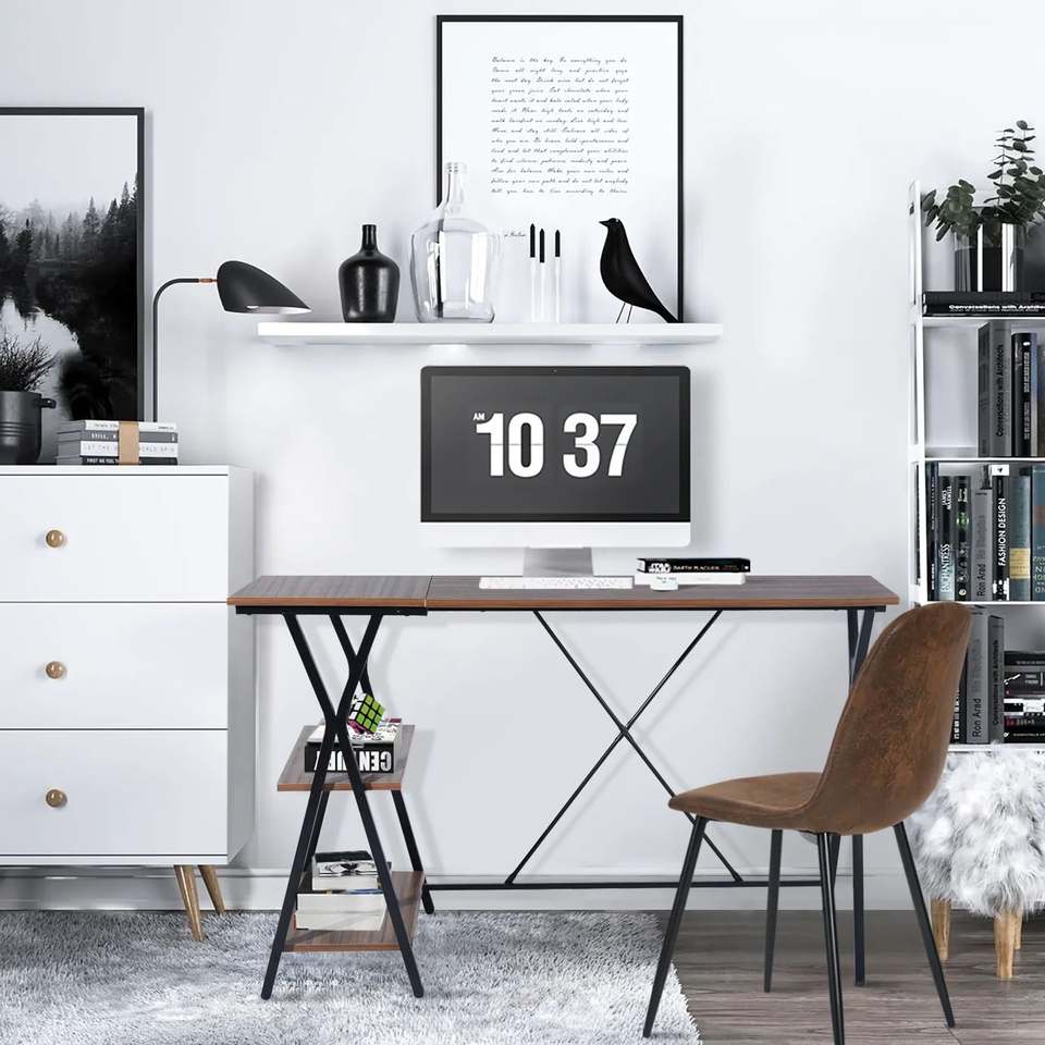 Table d'ordinateur noire portable moderne Mobilier de bureau à domicile avec cadre en métal noir Bureau élégant pour l'école