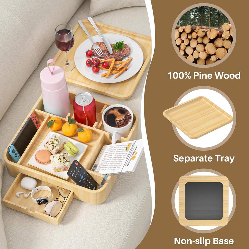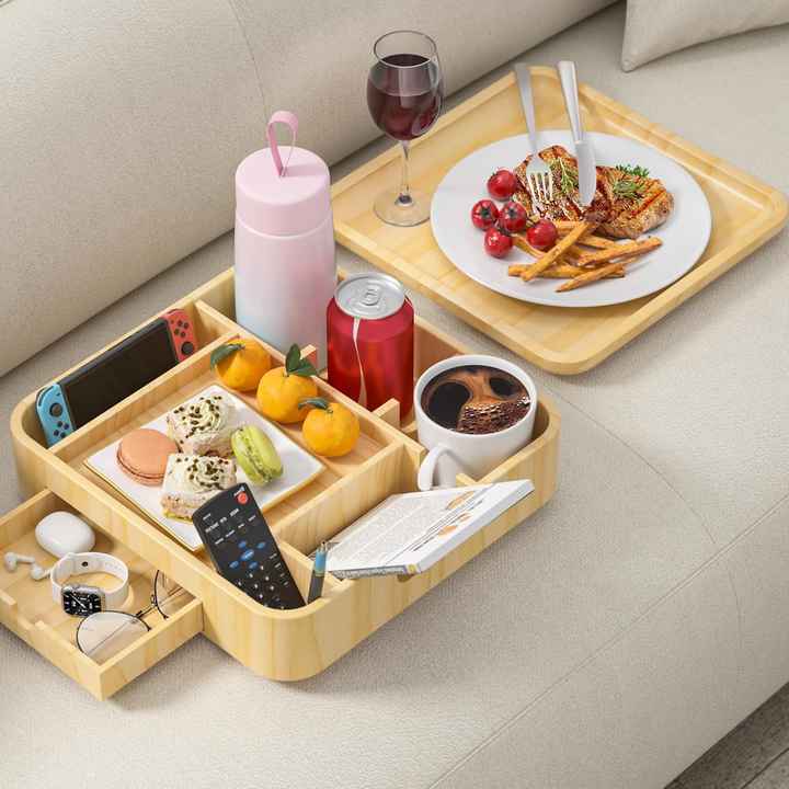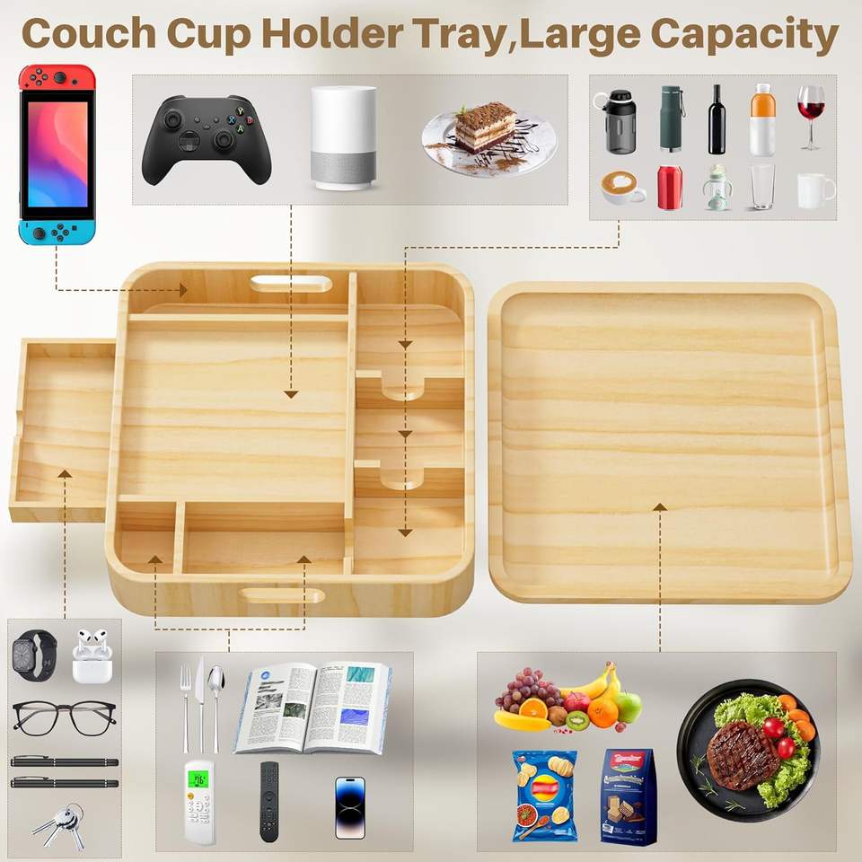 Plateau porte-gobelet multifonctionnel moderne en bois pour canapé, amovible, table d'accoudoir pour canapé, caddy poli pour les fêtes