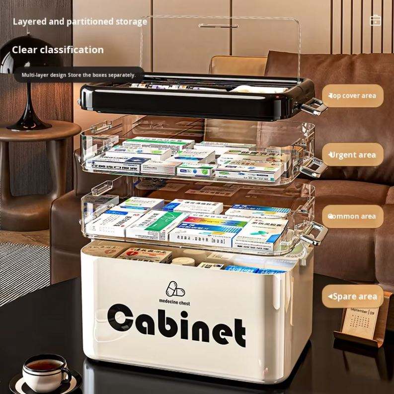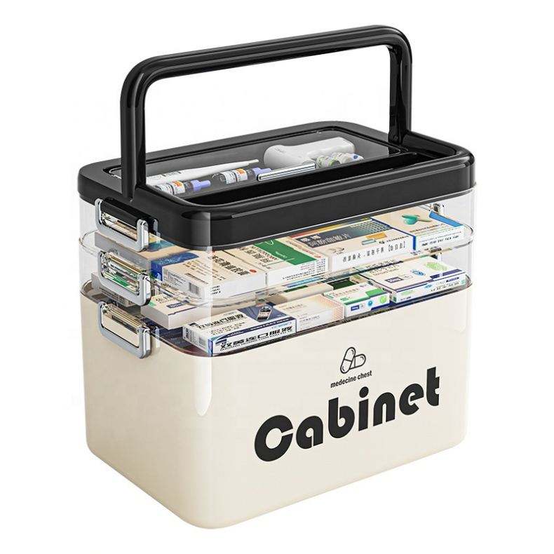 Boîte de premiers secours de voyage portable moderne en PET, boîte de rangement pour médicaments domestiques, boîte en plastique étanche à l'humidité, boîte de rangement avec poignée