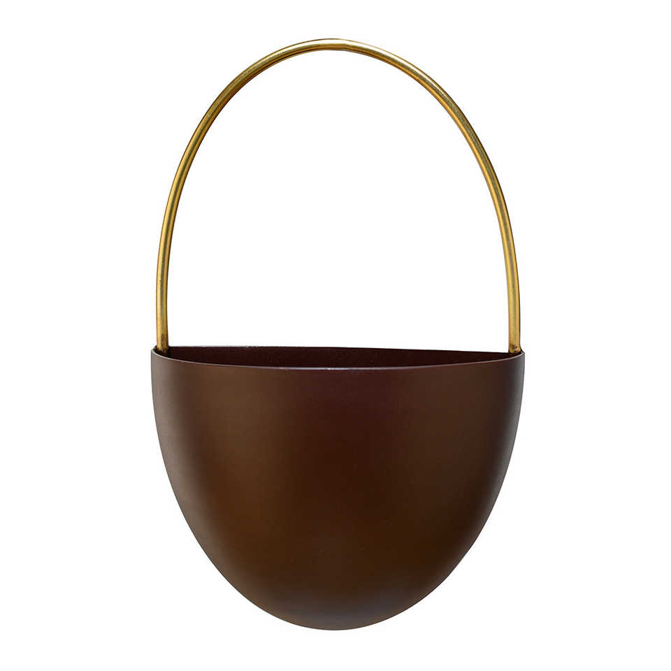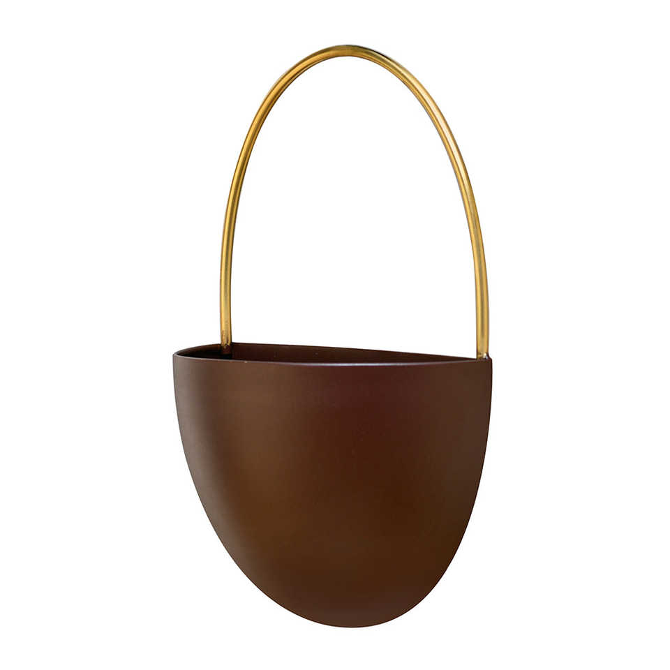 Porte-plantes mural moderne en métal thermolaqué avec poignée dorée, suspendu, pour intérieur et extérieur, décoratif, style américain