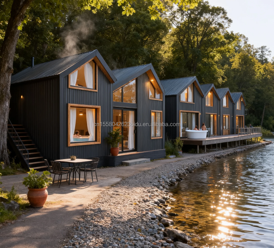 Maison préfabriquée moderne en conteneur, structure en acier galvanisé, fenêtres en alliage d'aluminium, couleur personnalisable pour hôtel/villa - Marque PINGUI