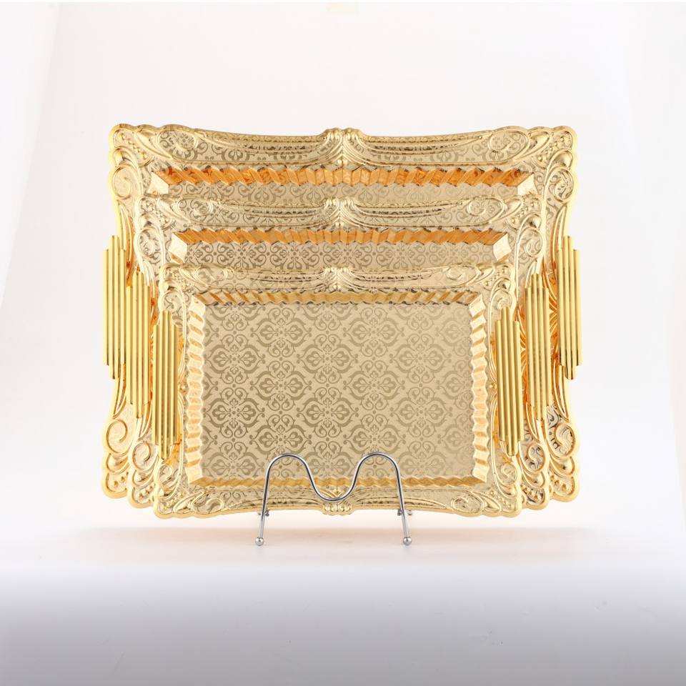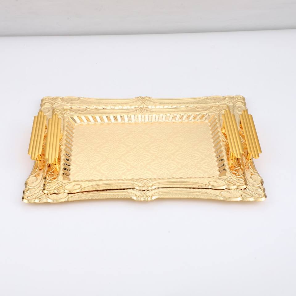 Product name:Luxury European Style Gold Silver Carved Metal Fruit Tray