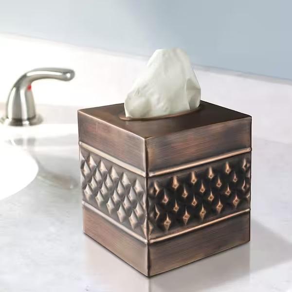 Modern Printed Metal Copper Color Tissue Cover Sleek Rectangular Napkin Storage Box Metal Napkin Holders Facial Tissue Box Hold