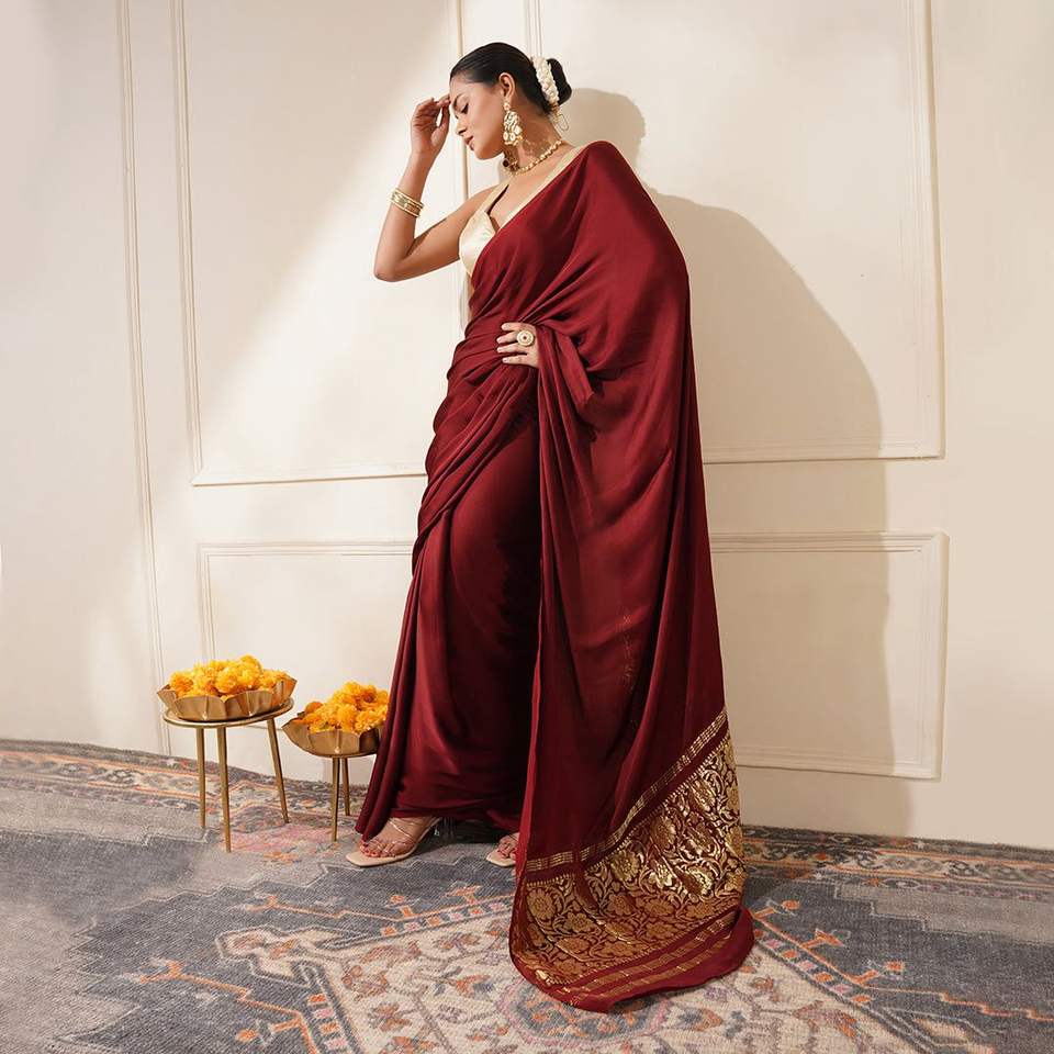 Sari moderne en soie pure fantaisie pour les fêtes, les mariages et Diwali